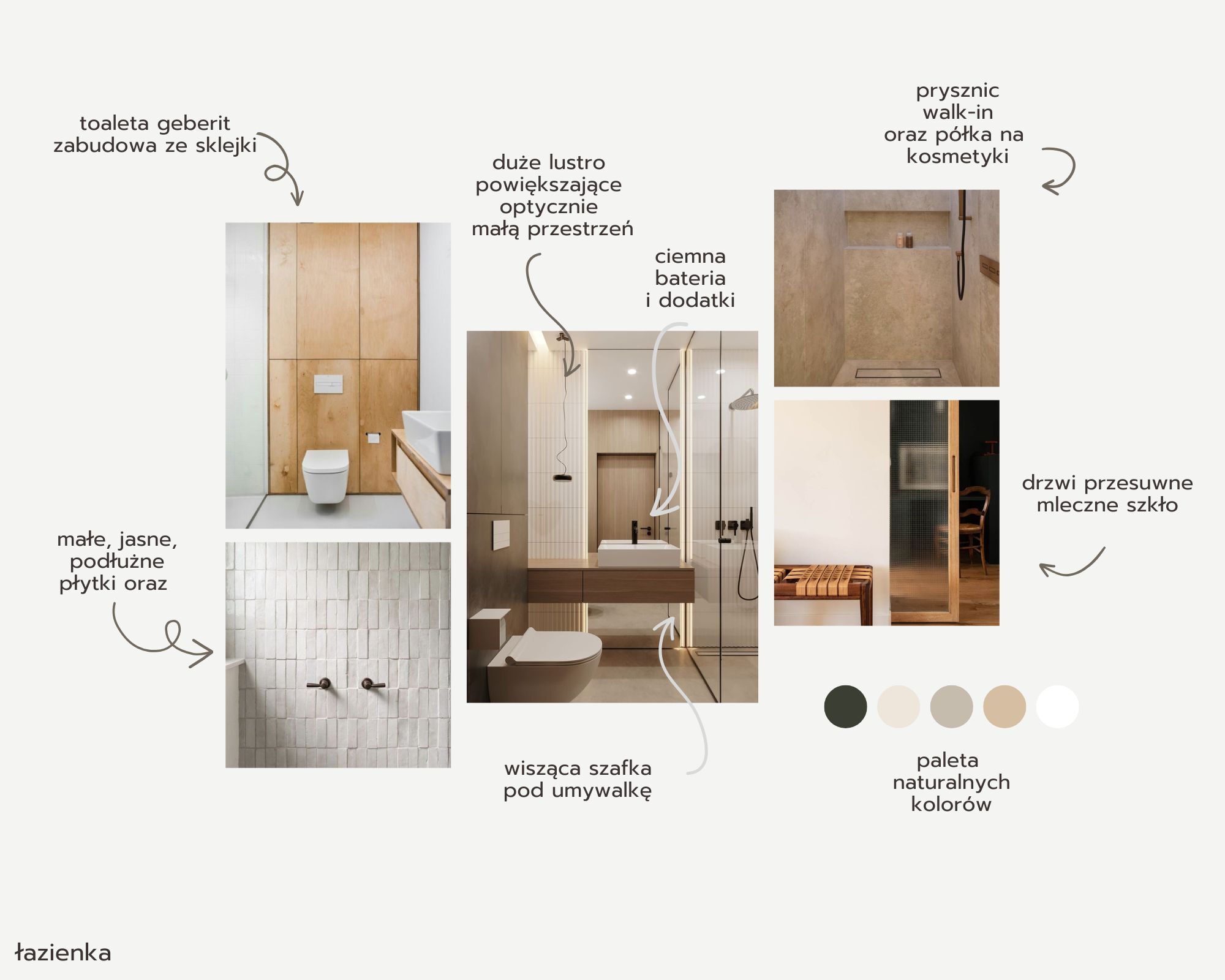 ✔ Moodboard-graficzne zestawienie produktów: 2-3 warianty na podstawie wybranego układu funkcjonalnego. (Moodboard pozwala przedstawić klimat przedstawionej przestrzeni, barwy, materiały, przedmioty oświetlenie itp.)