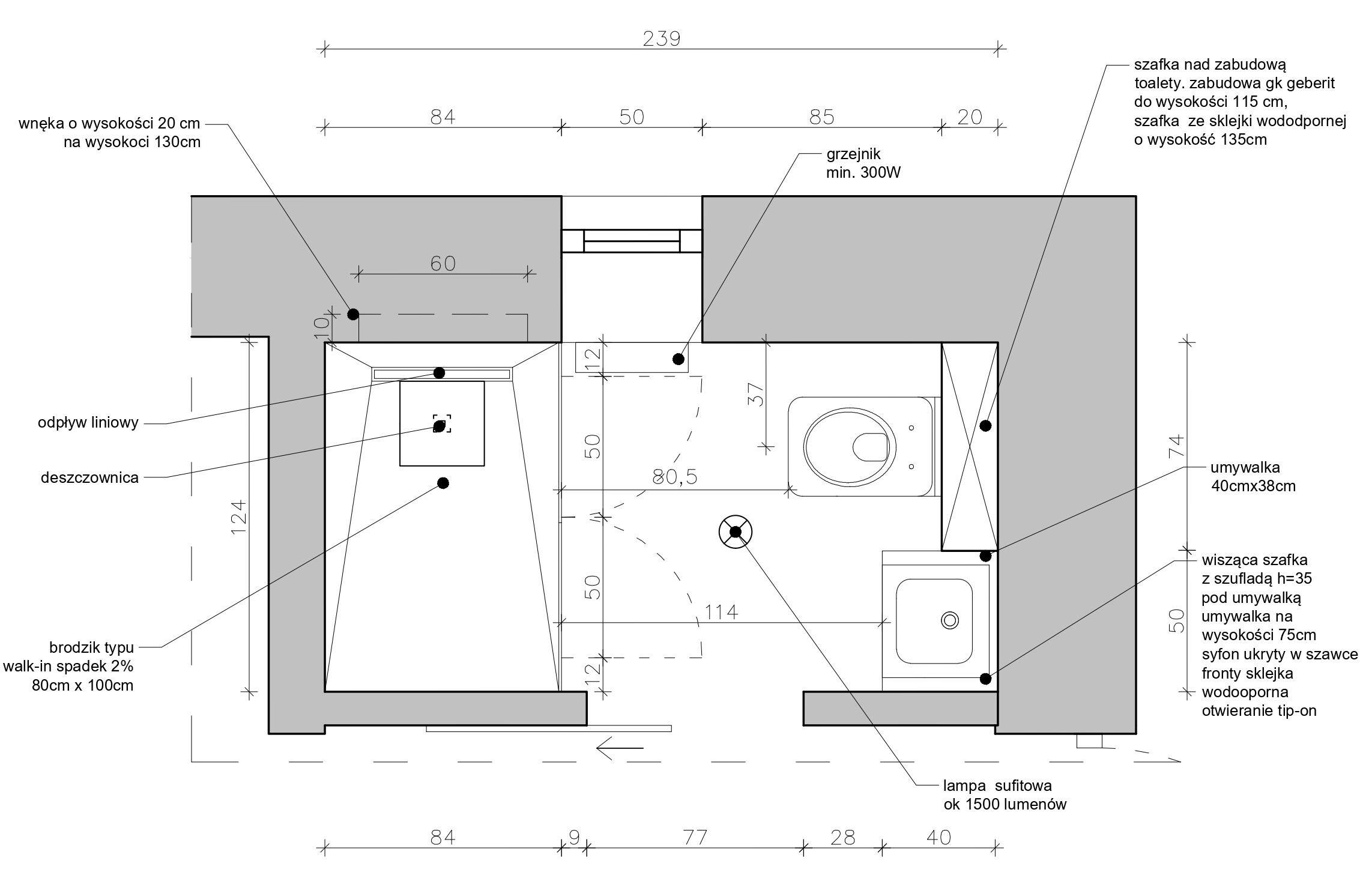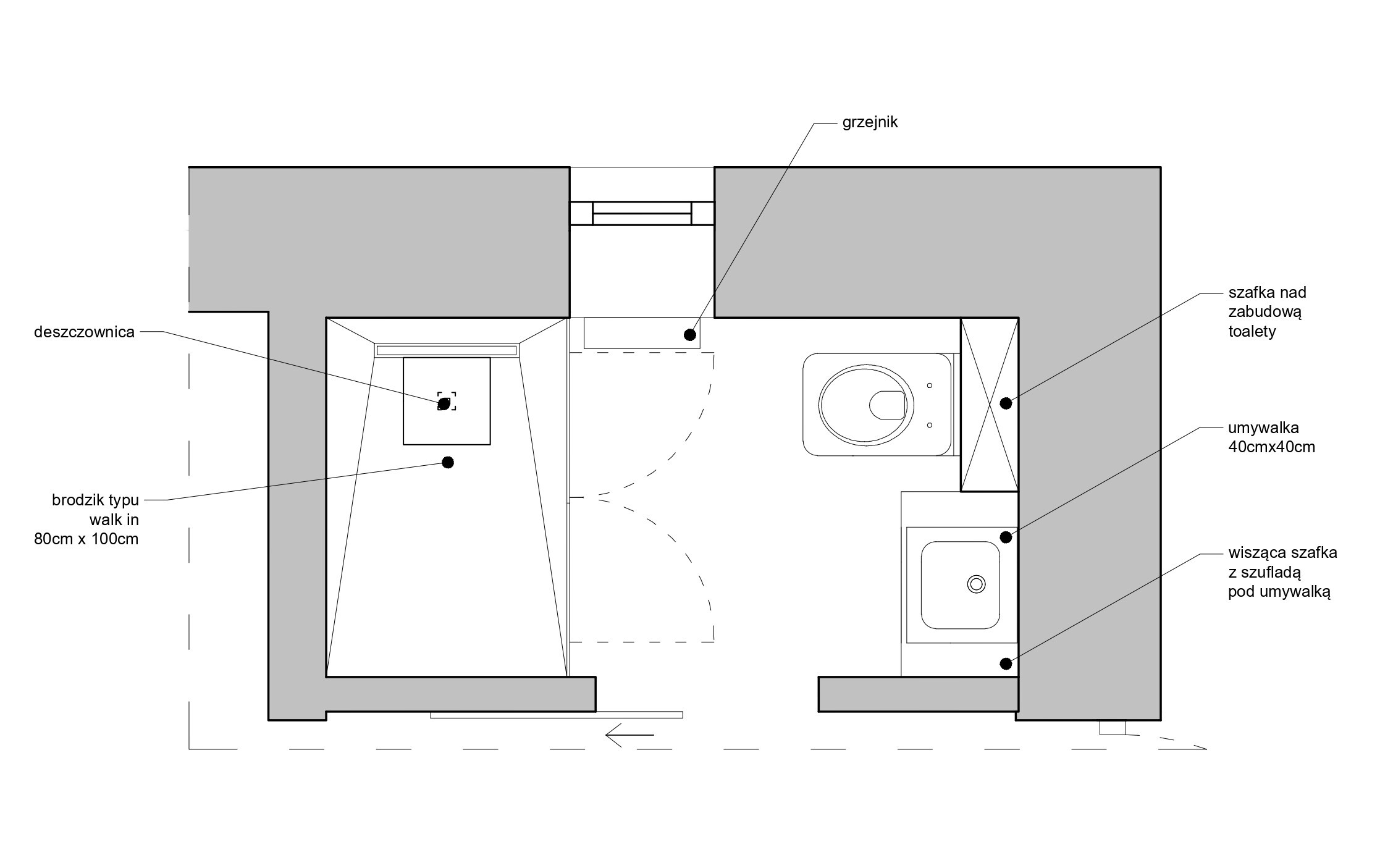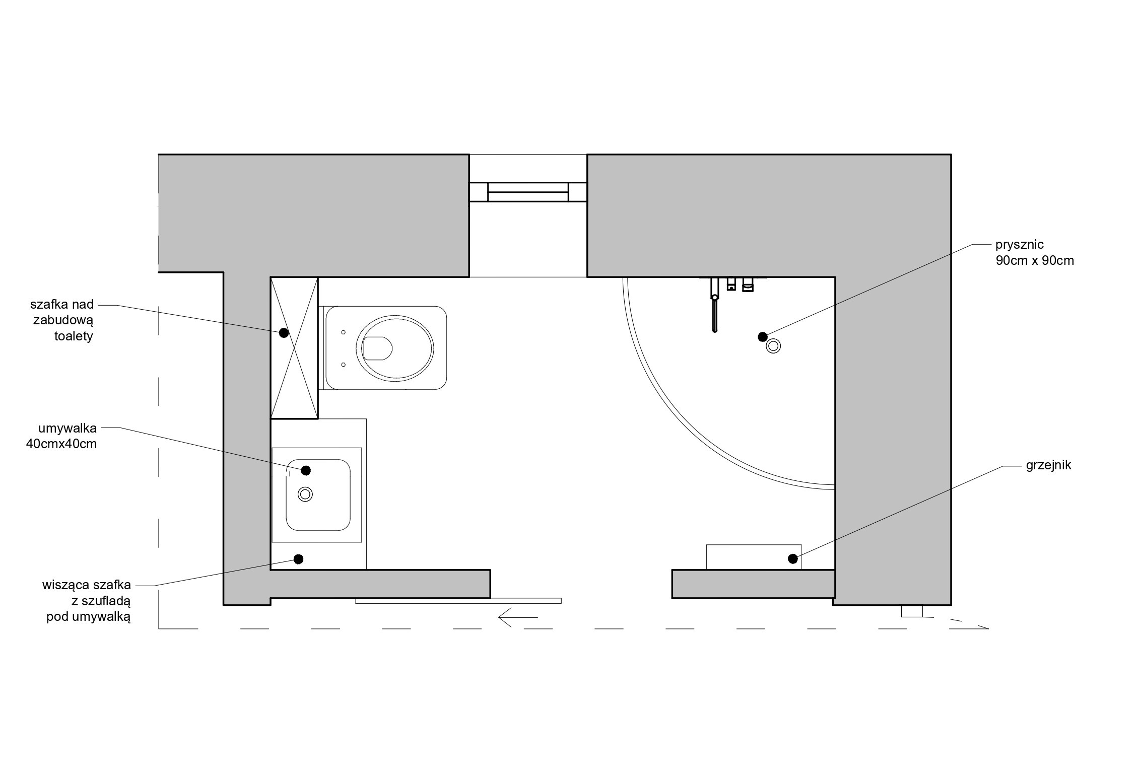 ✔ Rzut wraz z wymiarami wybranego rzutu funkcjonalnego