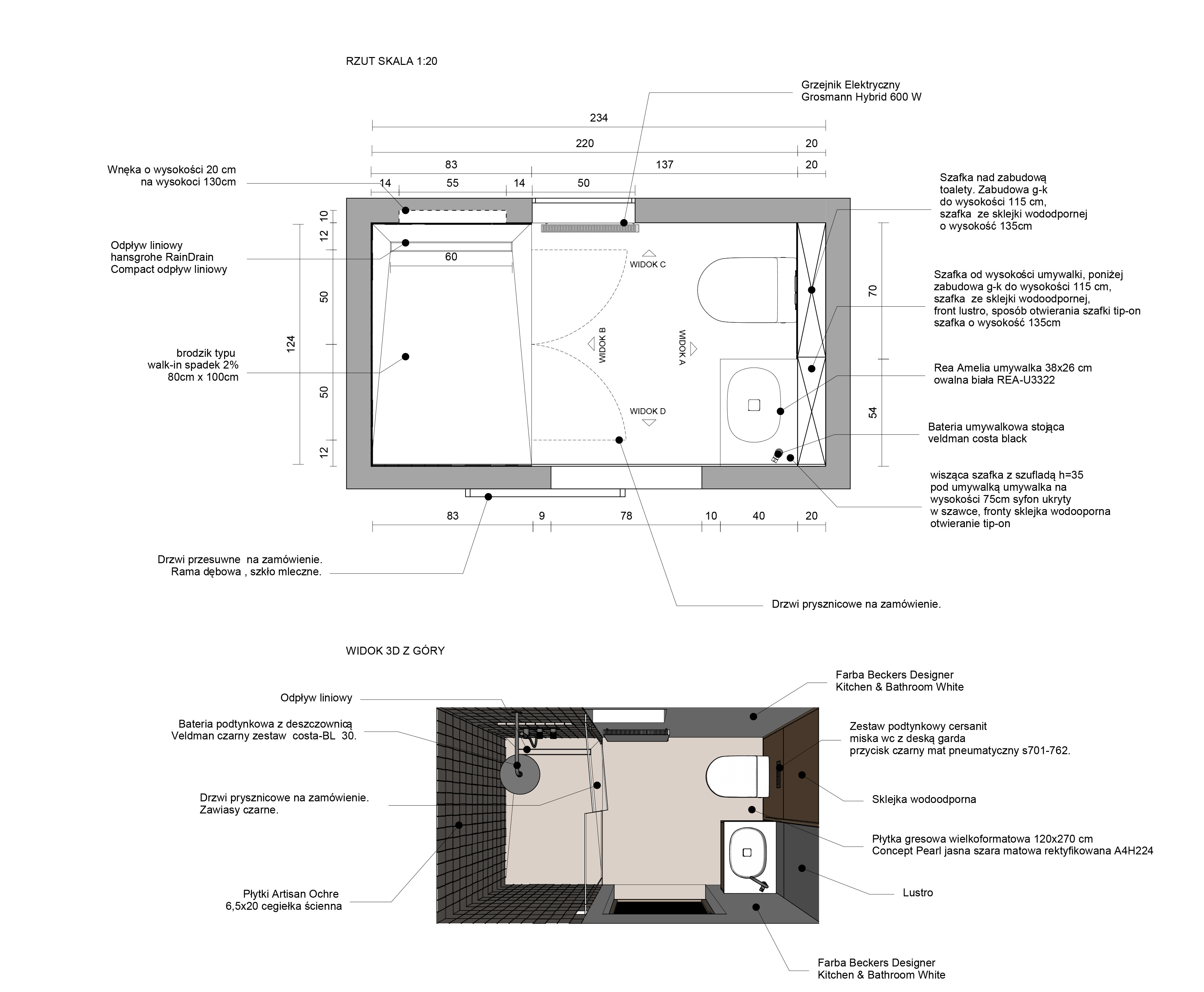 ✔ Rzut wraz z wymiarami wybranego rzutu funkcjonalnego.