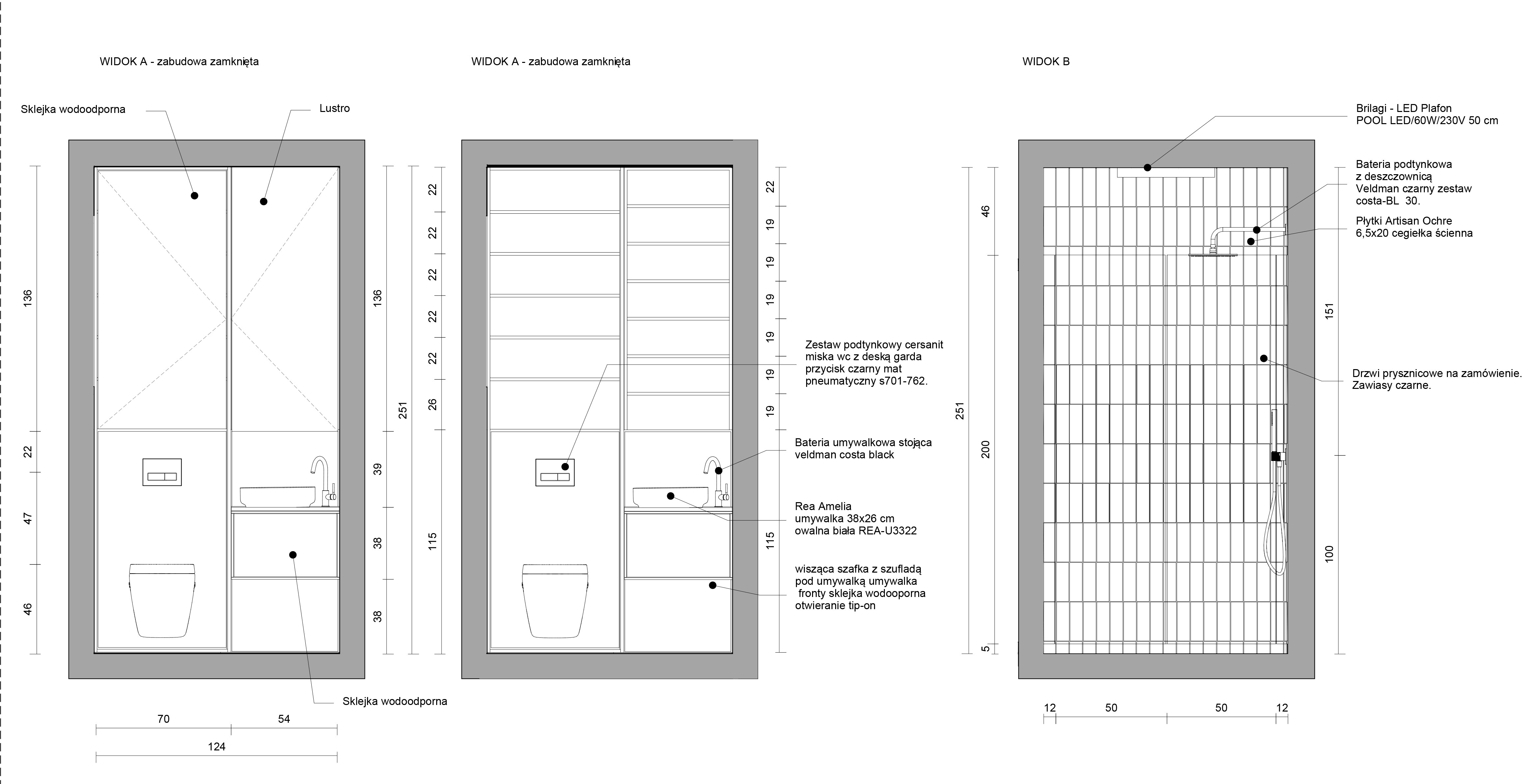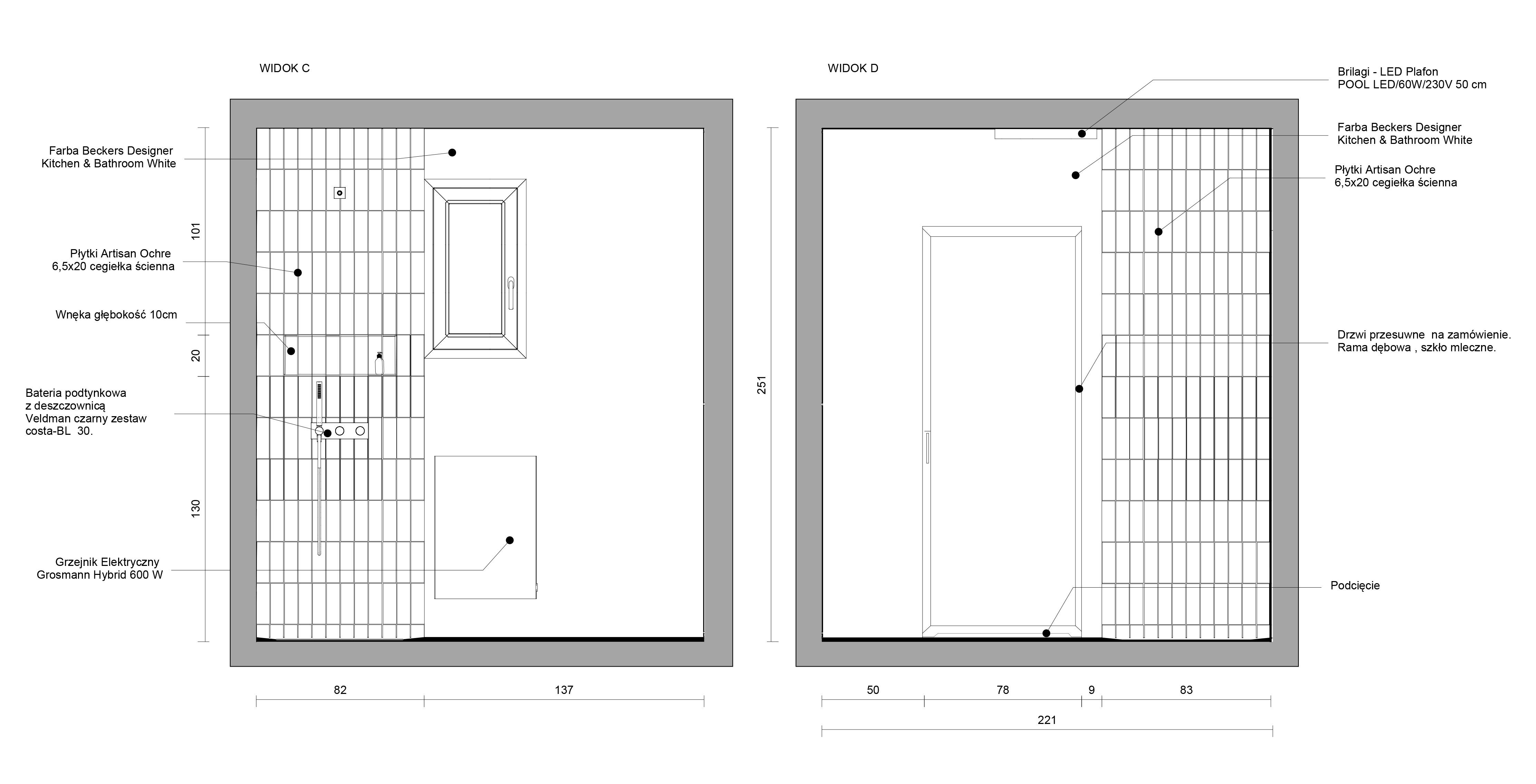 ✔ Widoki ścian z materiałami i z wymiarami.