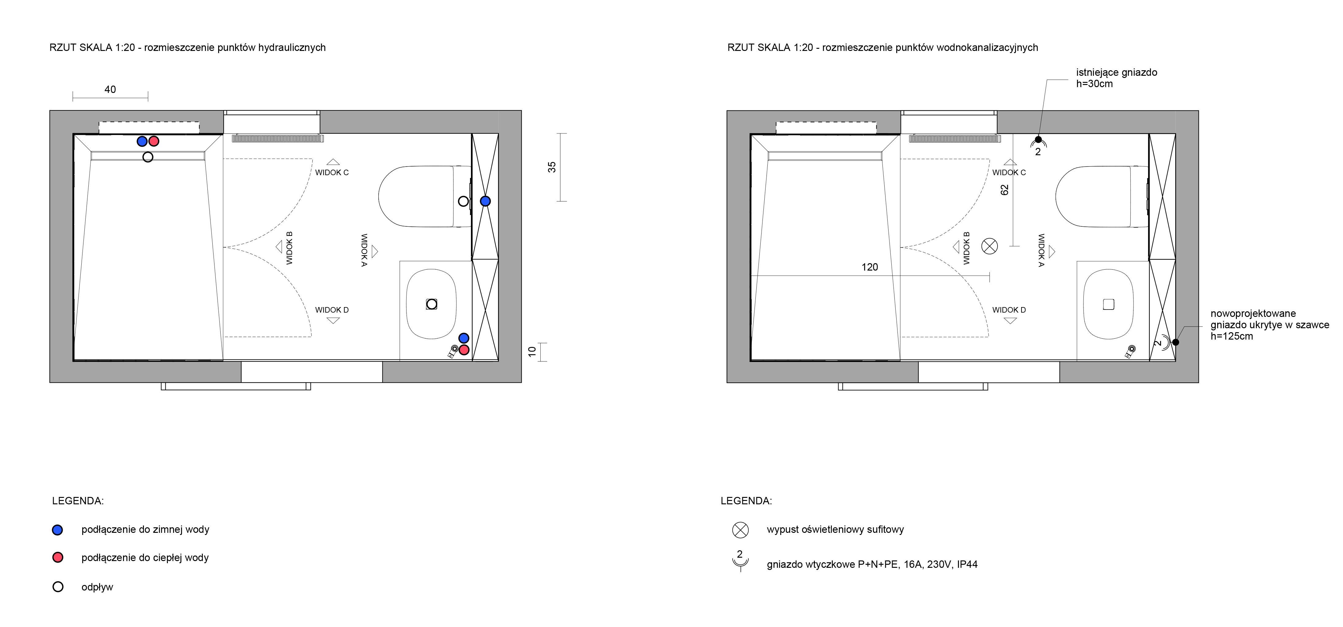 ✔ Projekt instalacji wodno-kanalizacyjnej (rzuty).
